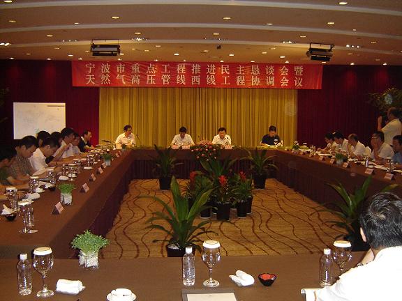 9月26日,市重点工程推进会暨天然气高压管线西线工程协调会在富邦大酒店召开,市发改委、江北区区政府、鄞州区政府和西线沿线各镇政府等20家单位参加会议。会议由发改委主持,兴光公司党委书记、董事长朱仲华,总经理金醒群等出席会议。