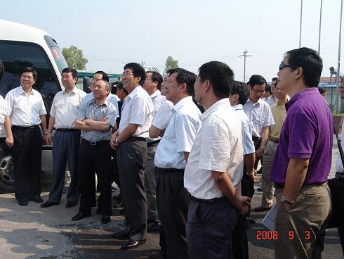 9月3日,市委书记巴音朝鲁,市委副书记、市长毛光烈携市人大、市政协、各区县领导等50余人,在伟德国际1949公司党委书记、董事长王宏祥的陪同下视察 “五路四桥”东外环与宁镇公路立交工程。