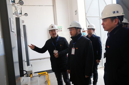 镇海门站是宁波最大的供气门站,日供气250万方以上,占宁波市区每日用气量的83%。在镇海门站,总经理纪育博向董事长钟建波详细讲解了镇海门站的生产情况和设备设施,特别是应对低温而新投用的管道加热系统,该系统采用循环热水提高天然气温度,以防止站内设备管道结冰等情况的发生,保障极端严寒天气下的稳定供气。