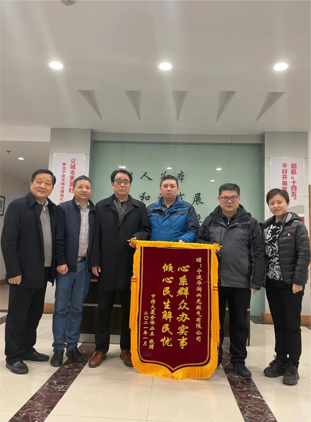 “实在太感谢了,没想到春节前能用上管道天然气,华润兴光燃气公司为我们办了一件大实事!”2月4日上午,鄞州区中特大厦业主代表一行4人来到华润兴光燃气公司工程部,送上一面锦旗。感谢一线建设者高效完成该小区35户居民的天然气改造,入住已20多年,却一直没用上清洁便捷天然气的老大难问题终于解决。
