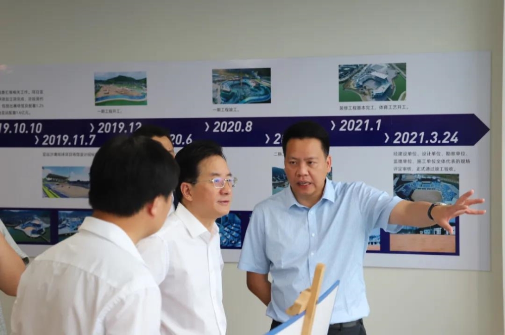 5月13日上午,亚组委副秘书长、杭州市副市长陈卫强带队调研半边山旅游度假区亚运沙排项目。