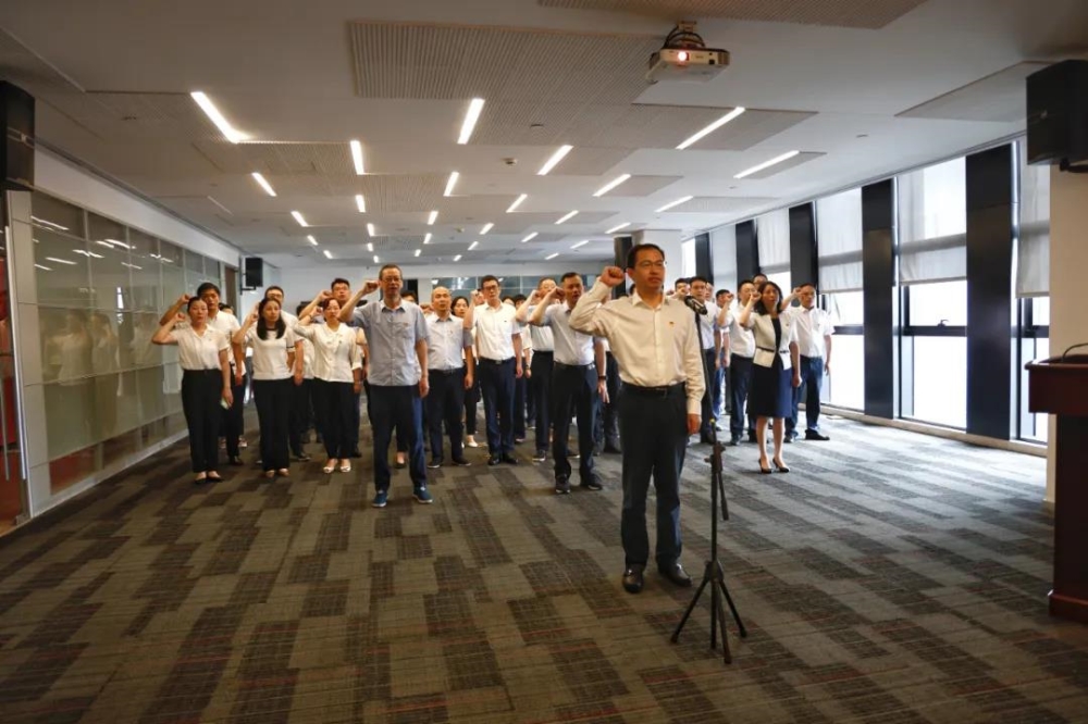 伟德国际1949公司领导陈志坚、史春红、严再天,伟德国际1949公司本级和伟德国际1949置业公司(宁房)党员干部等参加集中宣誓。