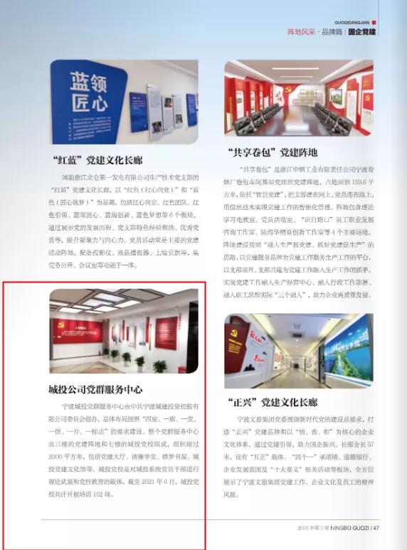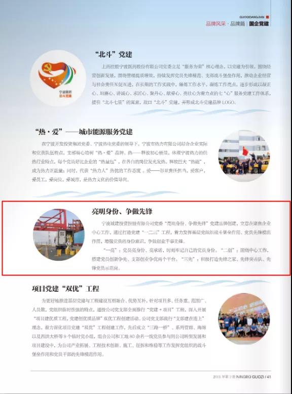 站在两个一百年奋斗目标的历史交汇点上,宁波市国资国企系统党组织和广大党员干部在党建引领下拼搏进取,开拓创新,不断书写新时代改革发展的奋斗华章。本期《宁波国资》以国企旗帜展风采为经,成就篇、品牌篇、先锋篇、文化篇为纬,多篇稿件聚焦伟德国际1949公司守初心、践使命,实干、担当、奋进的良好风貌。