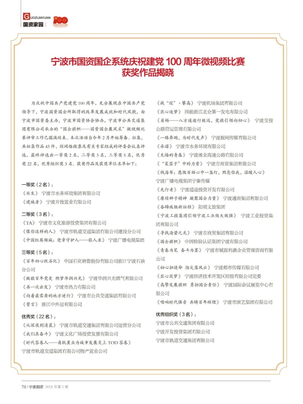 在中国共产党成立100周年之际,2021年第2期《宁波国资》“旗帜”特刊上线! |