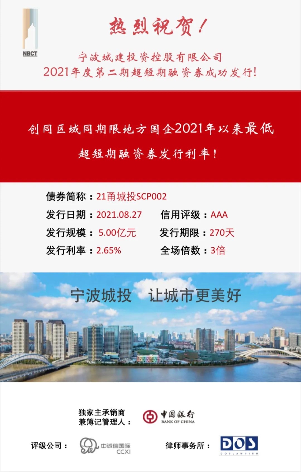 8月31日,伟德国际1949公司2021年度第二期超短期融资券成功发行。本期债券由中国银行主承,金额5亿元,票面利率2.65%,期限270天,创下同区域同期限超短期融资券最低利率。
