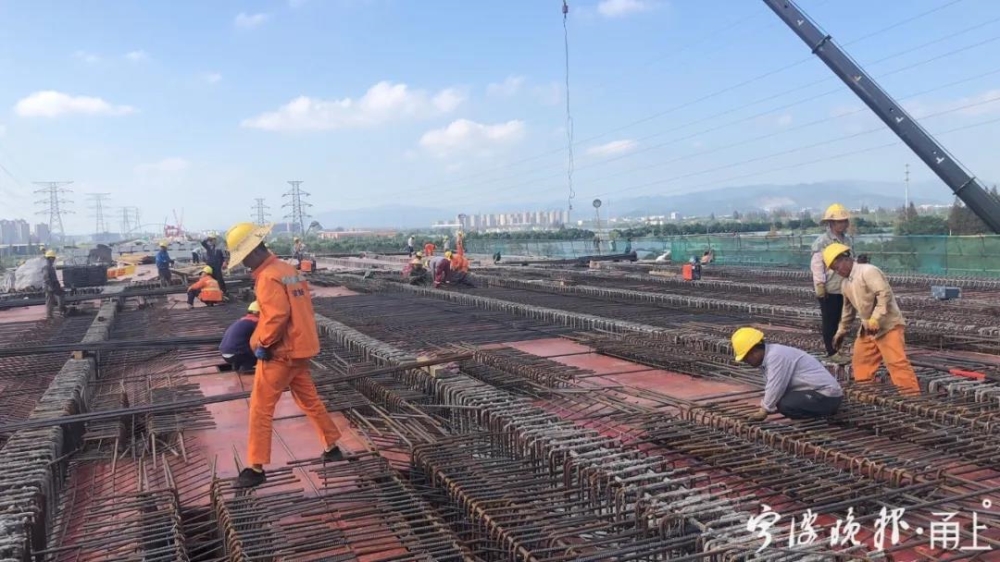 “目前,西洪大桥下部结构除海曙段受土地影响的匝道区域外已全部完成,上部结构已完成75%,道路及附属工程已完成50%,力争2021年底主线高架贯通。”该项目管理人员表示。
