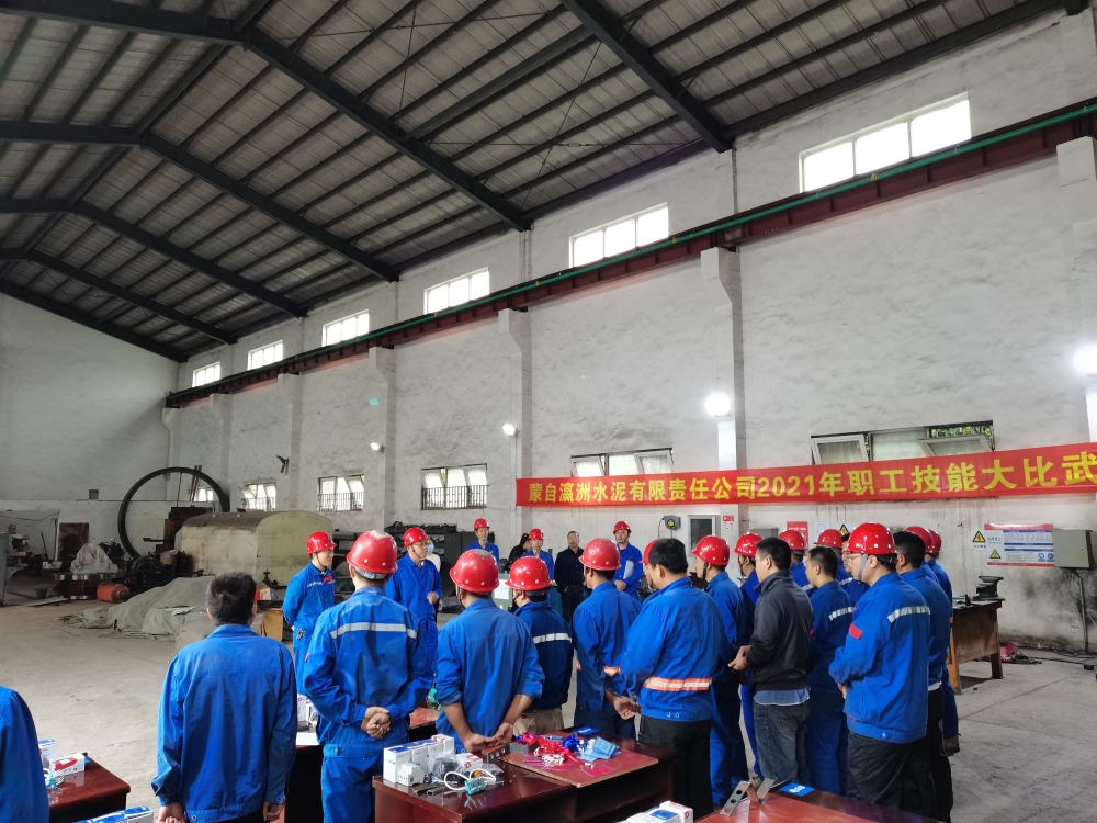 10月以来,蒙自瀛洲水泥公司组织开展第五届技能大比武活动,系列竞赛活动设电工、焊工、机修工、物力分析工、化学分析工、控制工六个工种项目,来自原料、烧成、成品、机电四车间和中控室、质化部、河口公司等共计68人参加比武。
