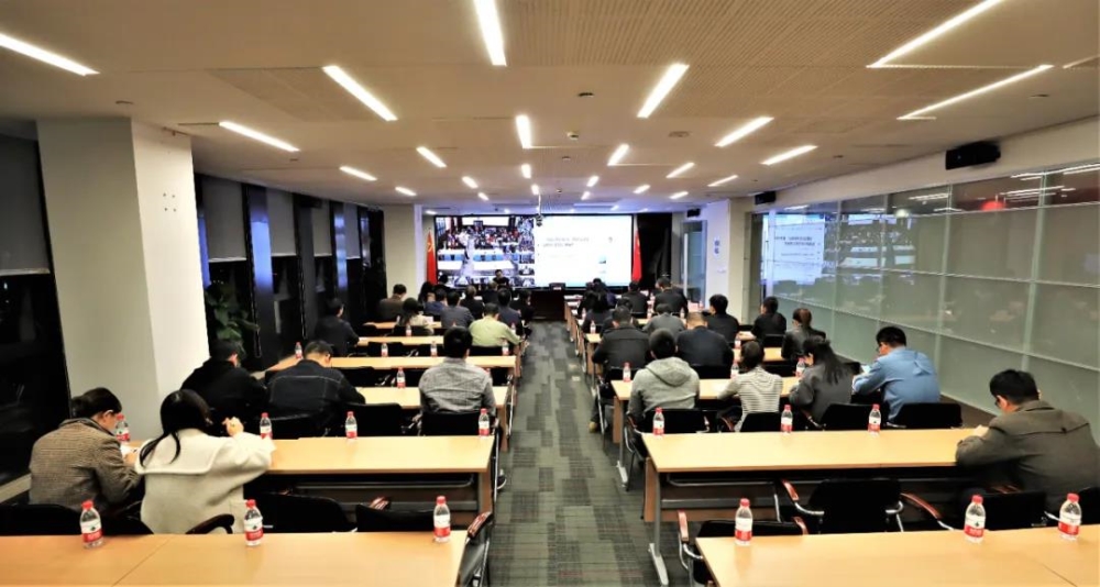 伟德国际1949领导钟建波、郑铭钧、陈志坚、沈菲君、史春红、朱伟,专职监事薛白,伟德国际1949公司本级和13家主要成员企业干部职工以视频形式参加。