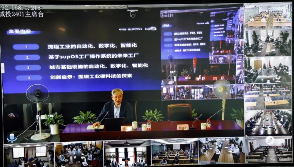 讲座期间,褚健教授从“流程工业的自动化、数字化、智能化”“基于supOS工厂操作系统的未来工厂”“城市基础设施的自动化、数字化、智能化”和“创新启示:围绕工业硬科技的探索”等四个方面,以通俗易懂的语言、鲜活的案例和生动的视频材料,为大家上了一堂数字化课程。还详细分析了工业软件驱动第四次工业革命,5T技术支撑流程工业企业核心需求;解读了“工业OS + 工业APPs”赋能产业生态,数字化转型的关键步骤是打造透明工厂等前沿知识。具体阐述了数字化在缓堵保畅促减排、提升枢纽集散效率、治污水防涝、助水旱灾害防御和促进低碳节能的作用和应用场景,分享了围绕工业硬科技的探索和创新经验,以及深耕工业自动化领域的心得体会。