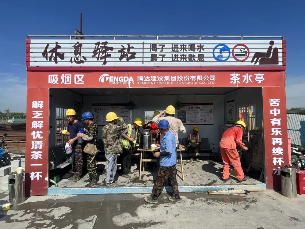 两江公司积极协调参建各方,在姚江北岸云飞路二期(邵渡路—广元大道)段工程I标施工现场,专门设置工人休息驿站,提供开水、绿豆汤、防暑药品等物资供一线工人使用。同时还专门成立工作专班,工程建设部经理现场驻点,主动靠前服务,帮助解决项目建设面临的实际困难和问题,全力保障项目高效推进。目前,该工程已累计完成总工程量的60%。