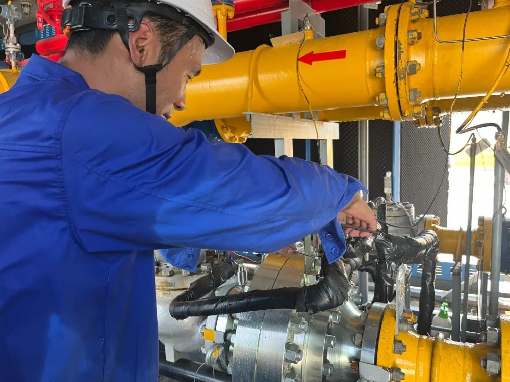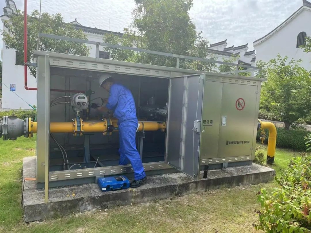 运行人员在半边山景区五彩渔镇燃气区域调压撬进行检查。