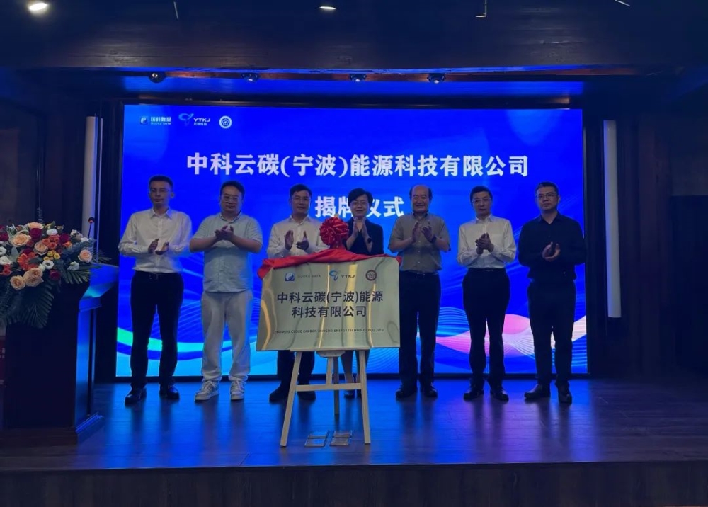 11月1日下午,由浙江云碳科技有限公司、北京国科智算科技有限公司、北京国科未来科技有限公司三方合资组建的中科云碳(宁波)能源科技有限公司正式揭牌成立。