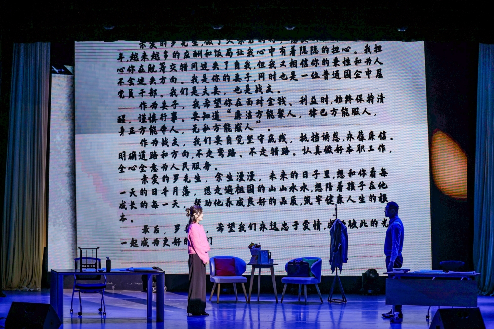 本次选送节目《洗墨》的创作灵感正是来源与此,通过妻子的练字爱好展开,引导警醒丈夫在日常工作中要拿稳手中的权力之笔,落笔有节、清新淡雅,做到纤尘不染。