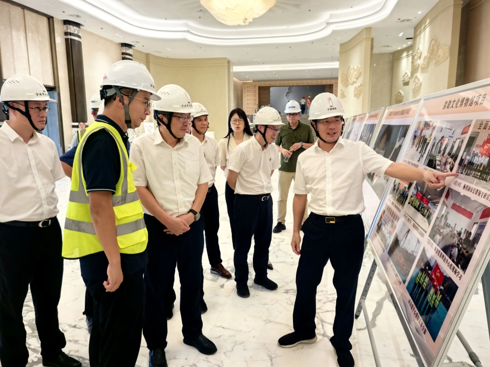 在已形象初显的项目现场,陈承奎主任一行拾级而上,不时驻足查看,详细了解项目整体布局、建筑设计、幕墙装饰、市政景观配套、智能化、新能源等建设情况。他详细听取项目全过程建设中,伟德国际1949集团公建事业部一线团队凝心聚力、攻坚克难、提速增效,突破解决勘察设计、施工建设等各阶段的难点和堵点,让小山坡蝶变为国家一级标准博物馆的不凡历程。陈承奎主任强调,要以创新改革为抓手,及时总结建设经验,学习发扬伟德国际1949人敢打硬仗、善作善成的精神,形成可复制推广的有效做法,为国企改革发展提供典范样本。
